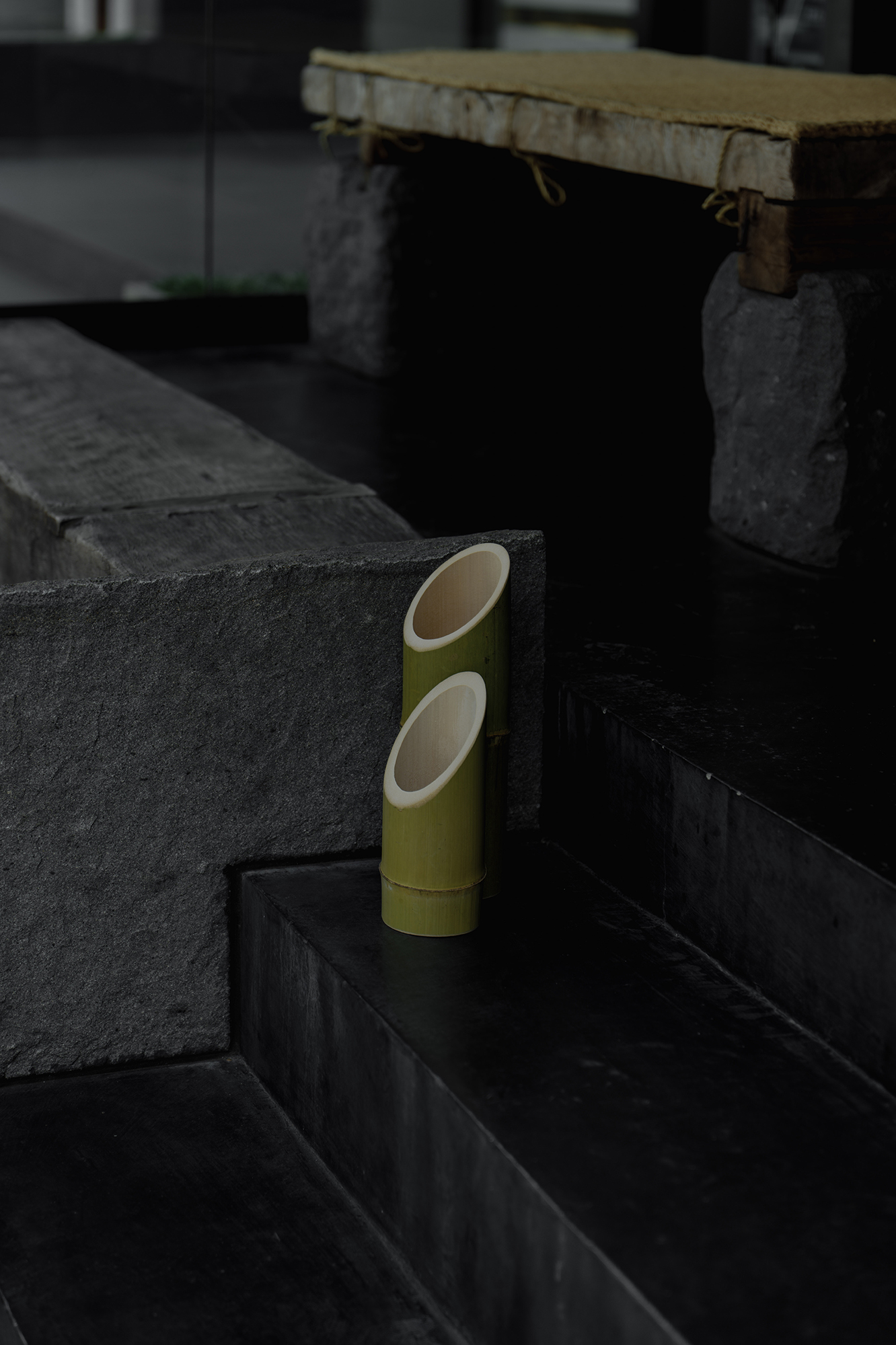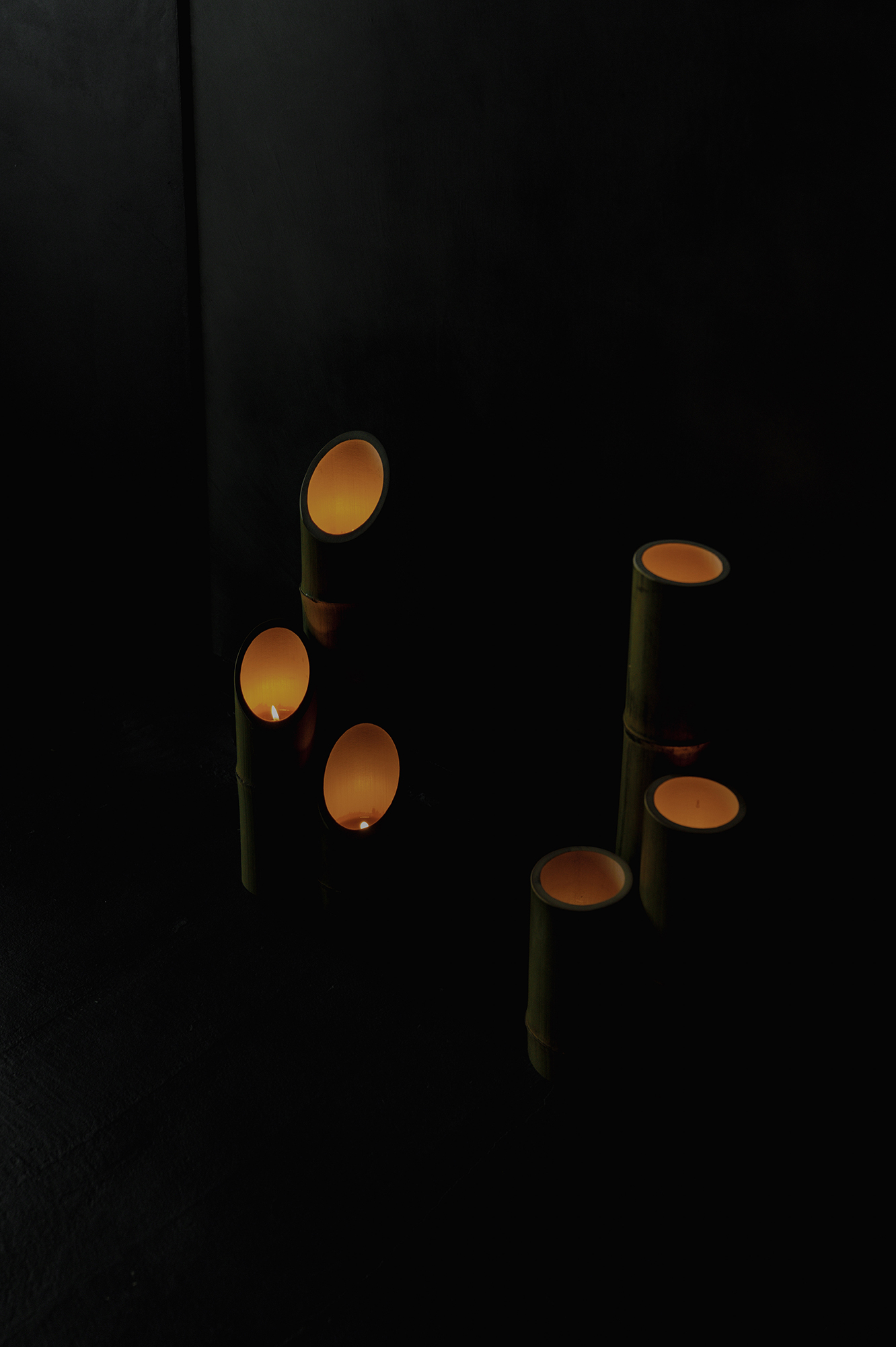 竹灯りによる天の川、織姫と彦星の象徴的なしつらえ、